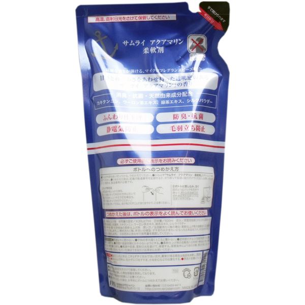 サムライ アクアマリン 柔軟剤 詰替用 500mL●甘さと爽やかさをあわせ持った透明感のある「サムライ アクアマリン」の香りの柔軟剤です。