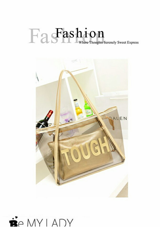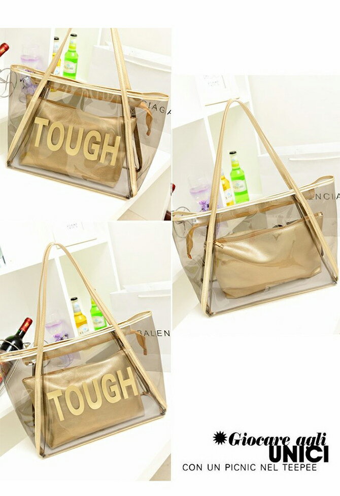 ポーチ付きクリアバッグ ビーチバッグ 透明 男女兼用 ハンドバッグ